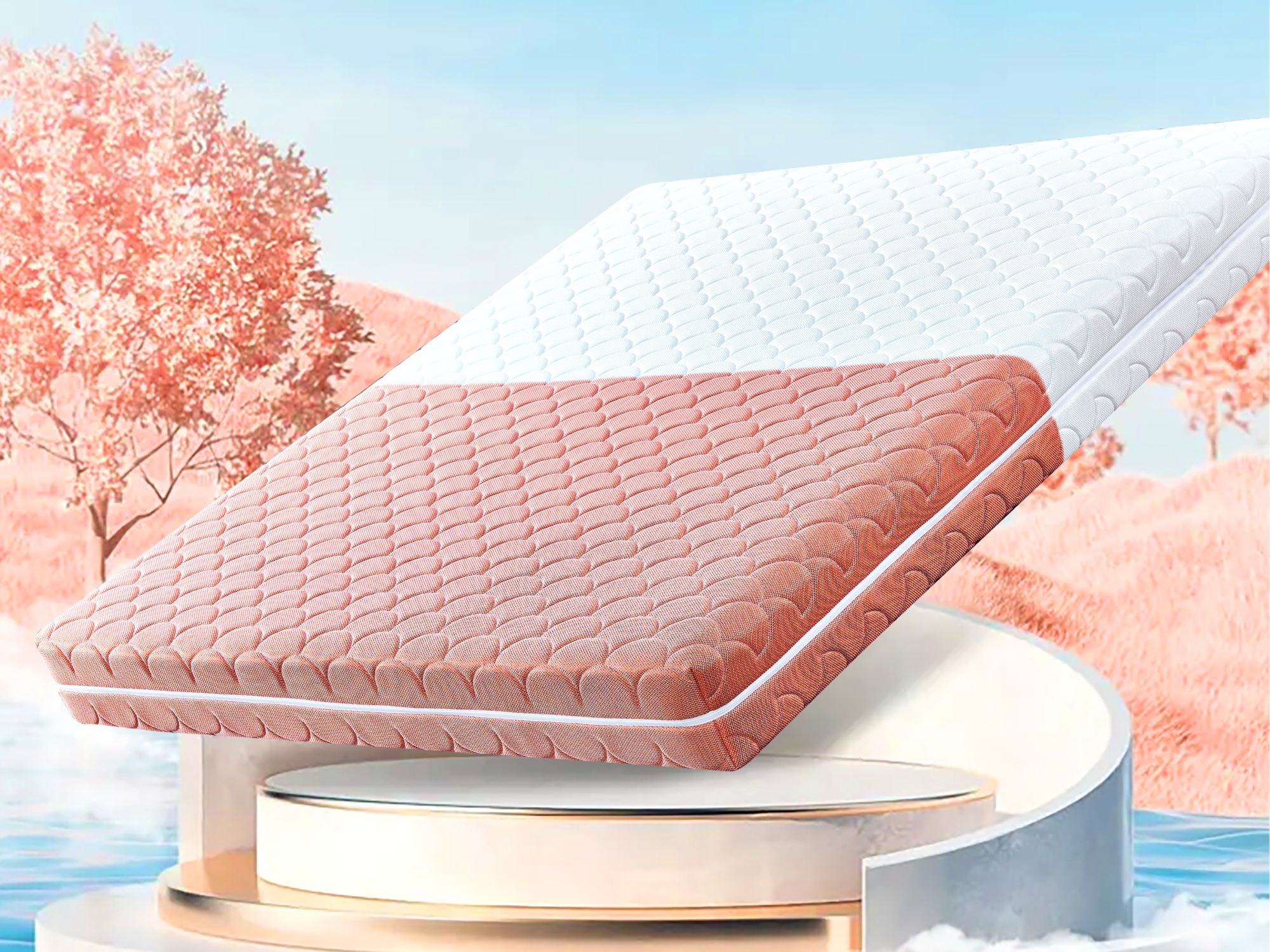 在靜謐的夜色里,邂逅一場溫柔的夢境之旅,讓安然3D釋壓透氣材料,織就隔音的密語,成為你夢鄉的溫柔守護者。 材料中間單絲“X-90°”交織的夢幻經緯,編織成三維立體的夢幻空間,每一絲功能性聚酯纖維,都承載著對品質生活的追求與向往。上下雙面的網孔,如同晨曦中輕拂的微風,讓空氣自由穿梭,帶走濕氣與疲憊,留下干爽與舒適。 它是科技與自然的和諧共舞,20毫米的輕盈厚度,藏著無限舒適的秘密。它懂得您的每一寸肌膚,以強大的透氣排汗之力,維系著睡眠的微氣候,溫度與濕度恰到好處,宛如春日晨曦,溫柔而細膩。 通風透氣,讓每一次呼吸都成為享受;緩壓體貼,讓您在睡眠中盡享自由和舒適。好洗易干,是它對生活的細膩關懷;環保健康,是它對現在和未來的承諾。 輕卷之間,便攜無憂,無論是旅途的奔波,還是日常的遷徙,它都是你最貼心的伴侶。隔音降噪,為你隔絕塵世的喧囂,只留一片寧靜于心。超輕材質,毫無負擔,